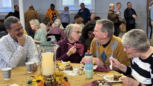 Grab a seat in the Community Room and find a table! Fresh food is prepared each week for everyone to enjoy. No matter how your week has been, you can always find a seat in the Community Room for fellowship and rest. We love having this opportunity to gather people from various ages and backgrounds for a communal meal together.